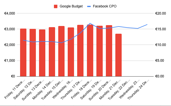 - Cost per order also increased to 12.66 Euros (exceeding target CPO of 9.40)