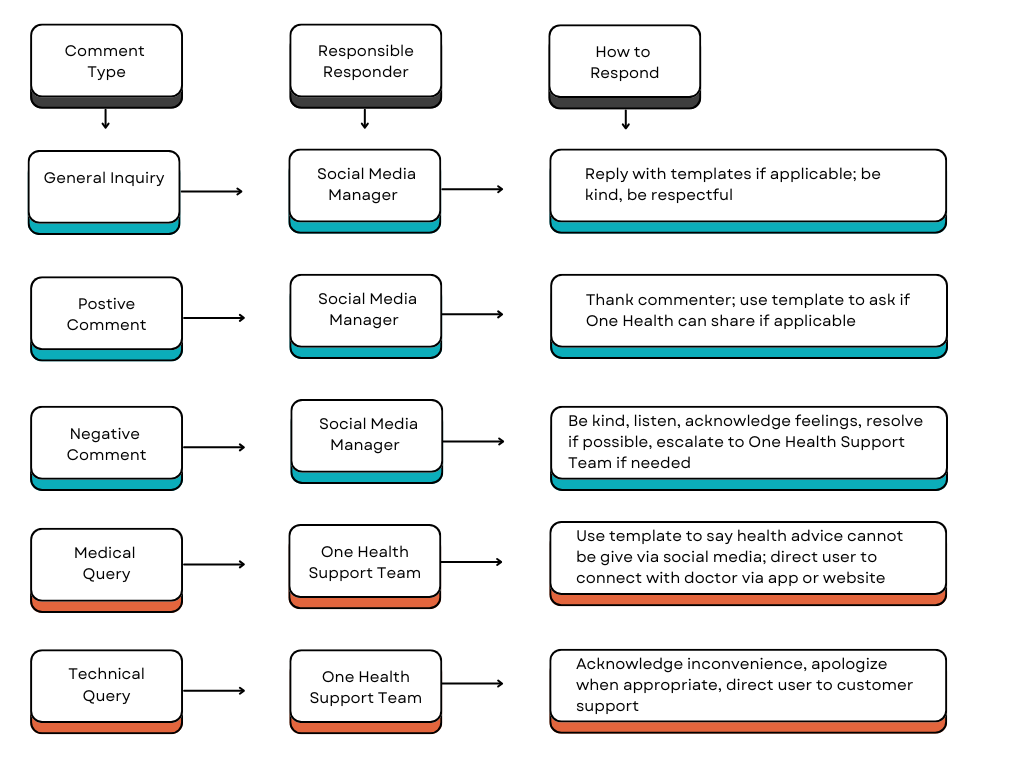 Created an org chart to clearly identify who is responsible for replying to what type of comment.