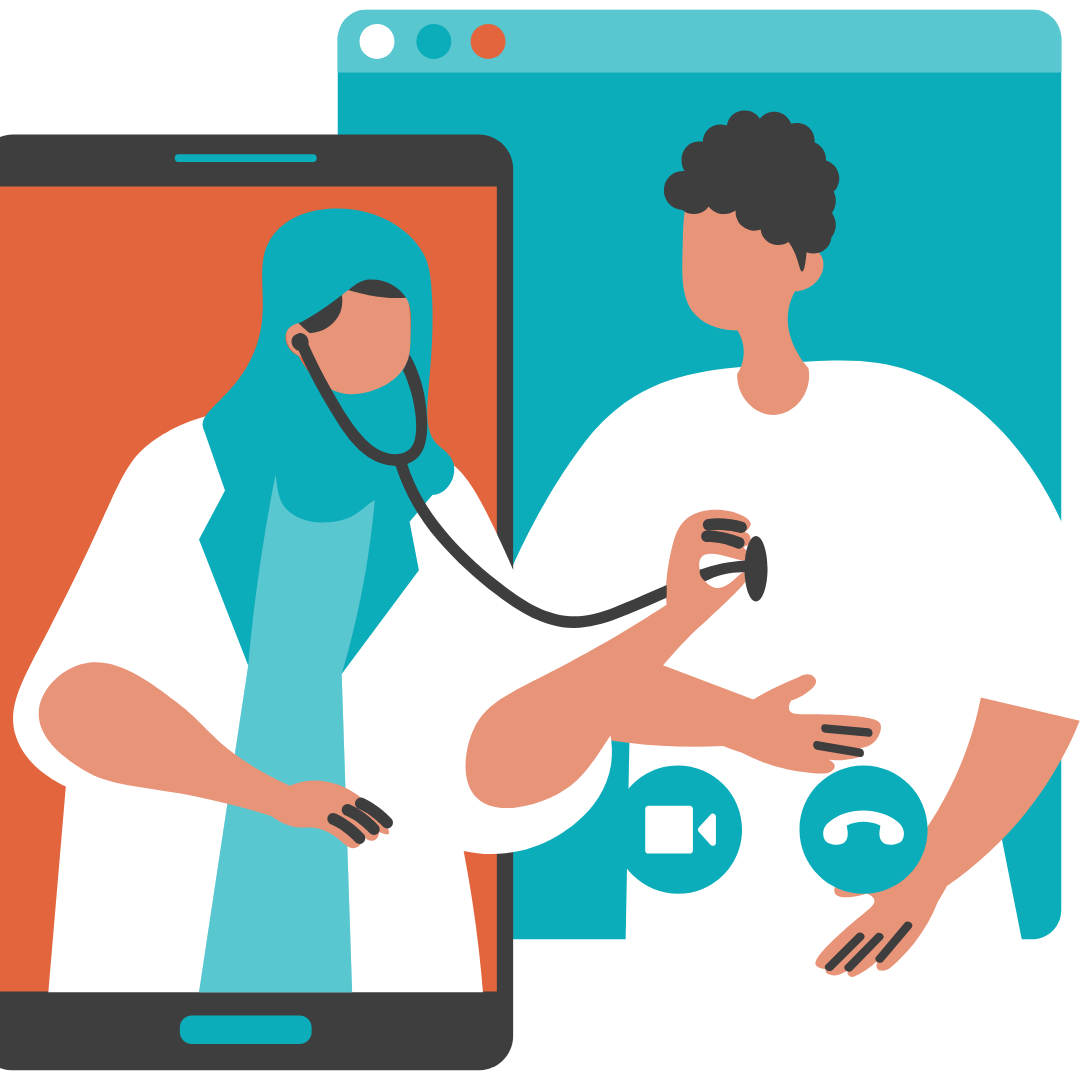 - Technology & Healthcare: photos or illustrations of medical being provided or accessed via technology